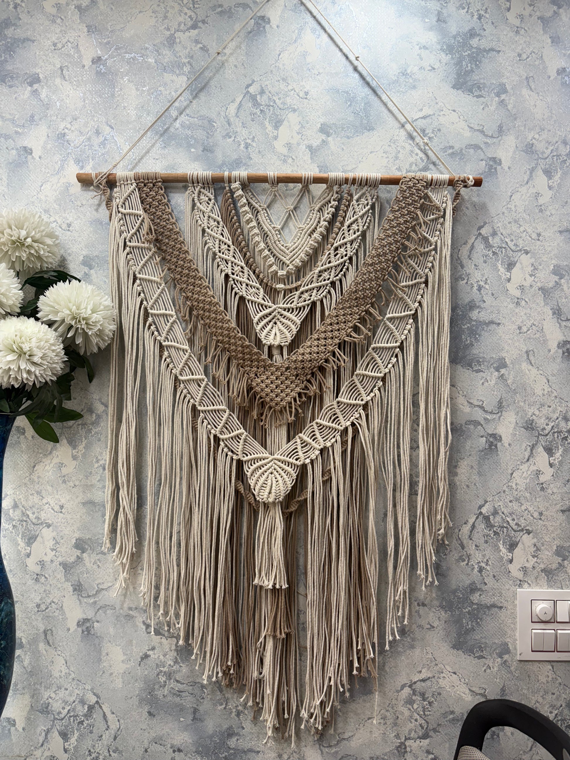 A Macrame Beige Wall Hanging is a decorative textile art piece that embodies the natural, earthy warmth of the bohemian (boho) style. The beige color refers to the slightly deeper, warmer tone of the cotton cord, which is distinct from stark white or off-white.