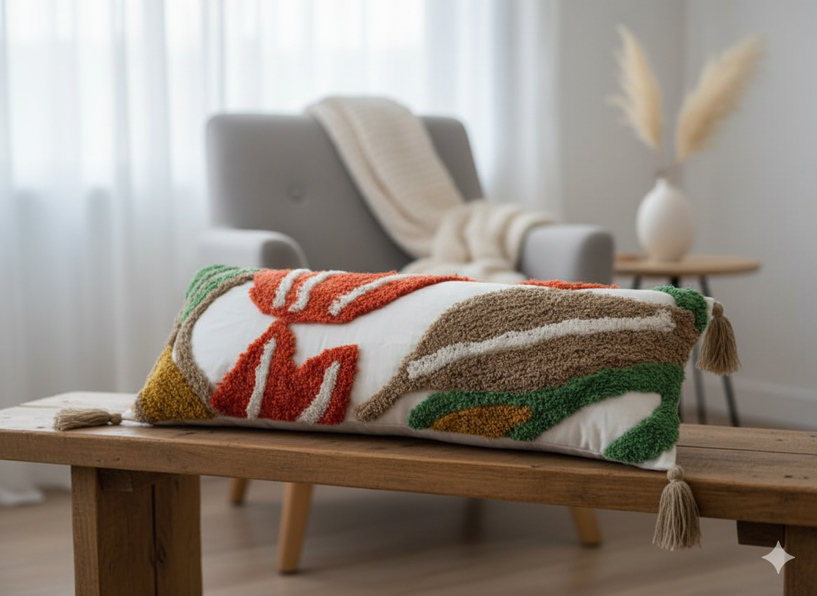 A Multicolor Lumbar cushion cover is an elongated, rectangular throw pillow cover designed to deliver a concentrated pop of various colors, visual energy, and artistic complexity to any seating area.